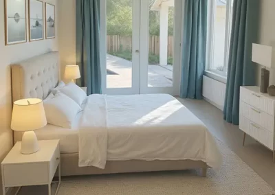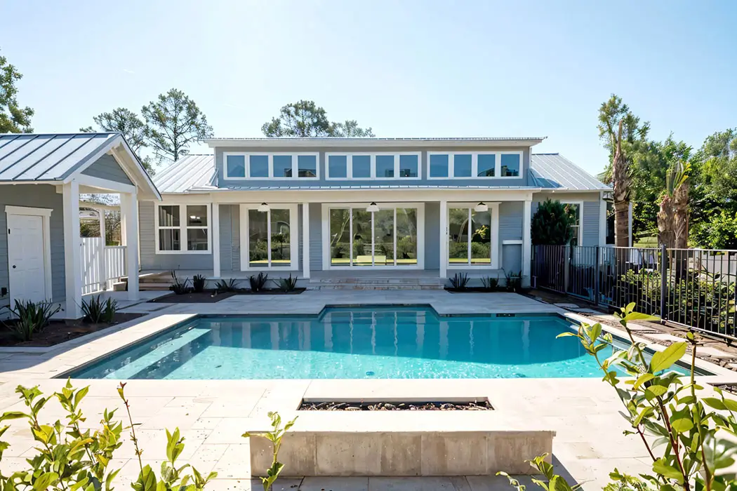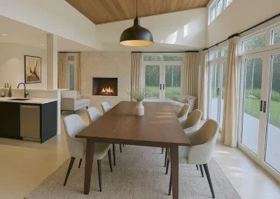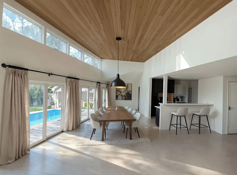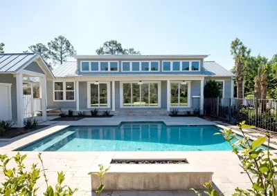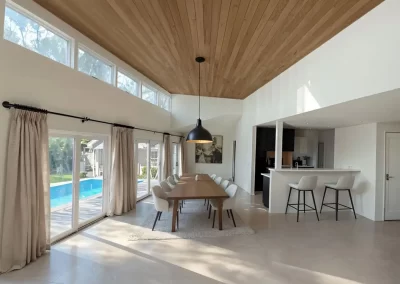 This property underwent a complete exterior and interior renovation, as well as extending the house to include a large open plan for the main living spaces, and a roof extension to create a new high ceiling over them and open the views to the backyard with pool deck, as well a filling the interior spaces with natural sunlight. The exterior architectural style of the existing house was maintained and used to create a new rear façade that becomes its main feature in contrast to its street front presence. All new Landscaping creates a welcoming public approach to the house, and a lush backyard that is the backdrop for the new open plan.